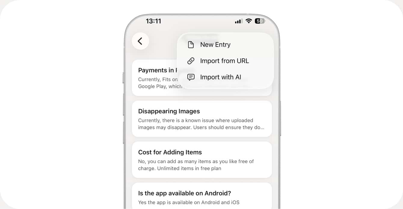 Import with AI is a powerful feature that let's you add or edit knowledge base entries with your own AI agent. Think of it like a librarian that knows your knowledge base and acts on your requests. You can ask the AI to do anything related to your knowledge base. Some example actions can be: