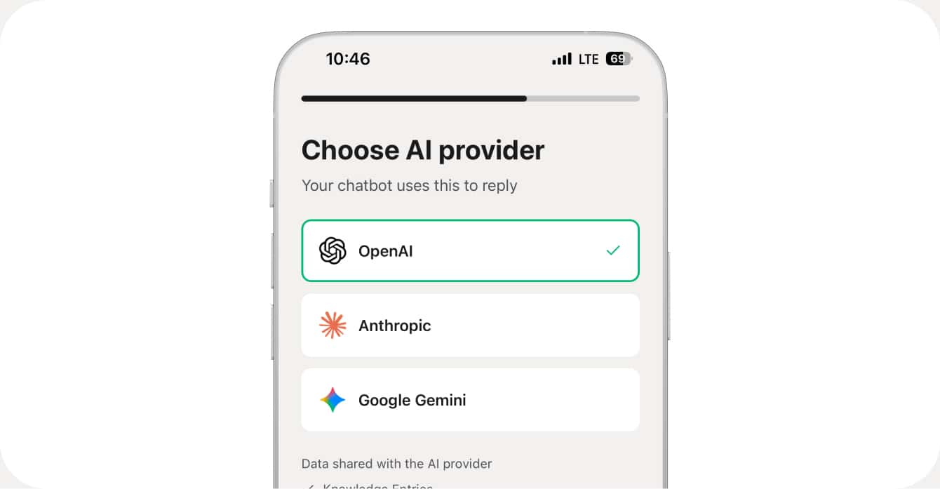 You also get to pick your AI provider. Chatmake lets you choose between three engines for your chatbot: