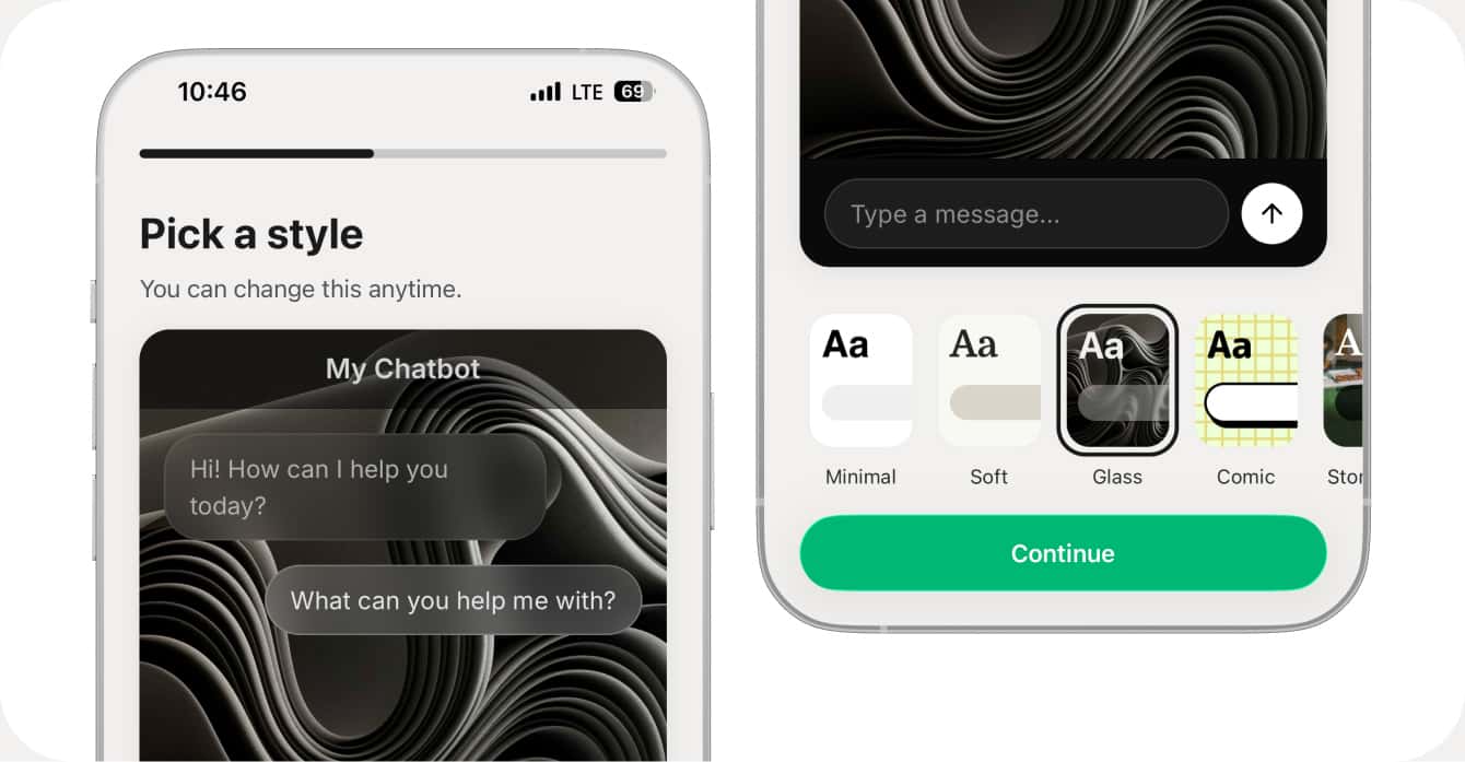 You can customize the colors, bubble styles, wallpaper, welcome message, and company logo. Start from one of their templates or build the look from scratch. The goal is to make it feel like part of your brand, not some generic bot that could belong to anyone.